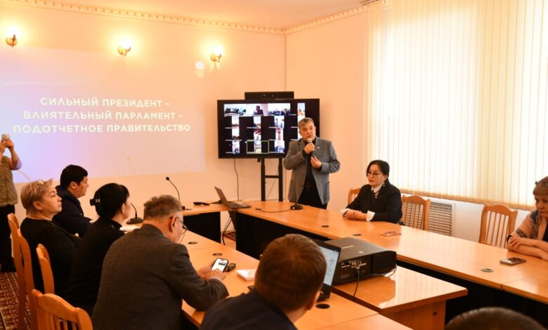 Теміржол басқармасының кіші мәжіліс залында өткен іс-шараға филиал қызметкерлері көп жиналды. Алдымен сөз алған Әбдухат Мырзалин Конституцияның жаңа жобасын қазіргі қолданыстағы Конституциямен салыстырып, оның дайындалуында, ішкі мазмұнында айтарлықтай айырмашылықтар бар екеніне тоқталды.